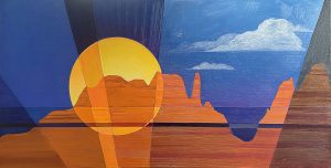 “I am inspired by naturally occurring lines in the environments around me, like a crack in a stone, or a beam of light cutting through the clouds. These edges are so striking in connection with the organic shapes we most often see, and I use my work to accentuate them. My series, “Sunscapes”, reflects a contemporary take on environment as a classical subject, inspired by ideas from Euclidean geometry.”